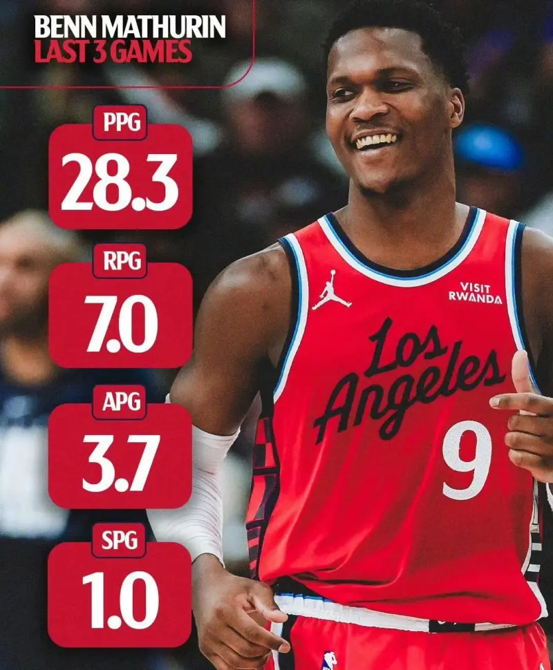 进攻端绝对香。加兰负责组织喂球,小卡负责关键时刻攻坚,马瑟林负责乱战冲击。三个人各司其职,进攻层次分明。马瑟林的乱战能力正是快船过去最缺的——一旦战术打不开,他能用个人能力搅乱对手防线。